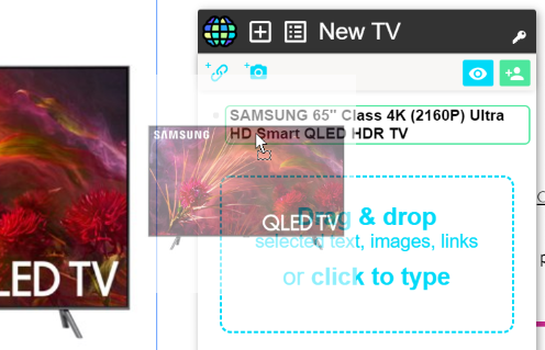 Most of the content can be added to Brainer by dragging and dropping different elements from websites. You can drag & drop a selected text (as a quote), pictures and links.